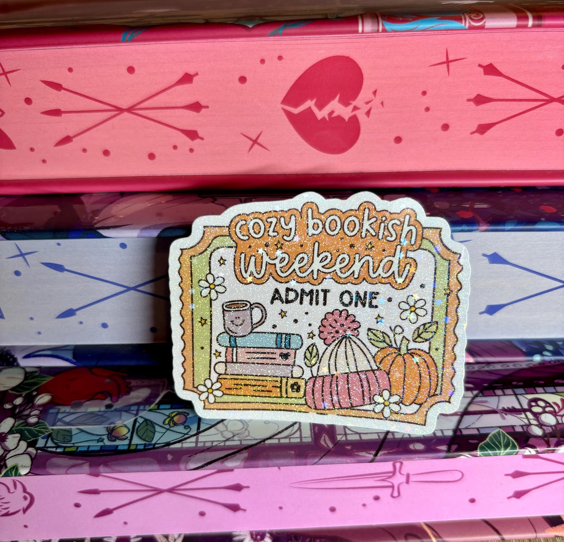 Cute cozy bookish weekend ticket - holographic laminate sticker