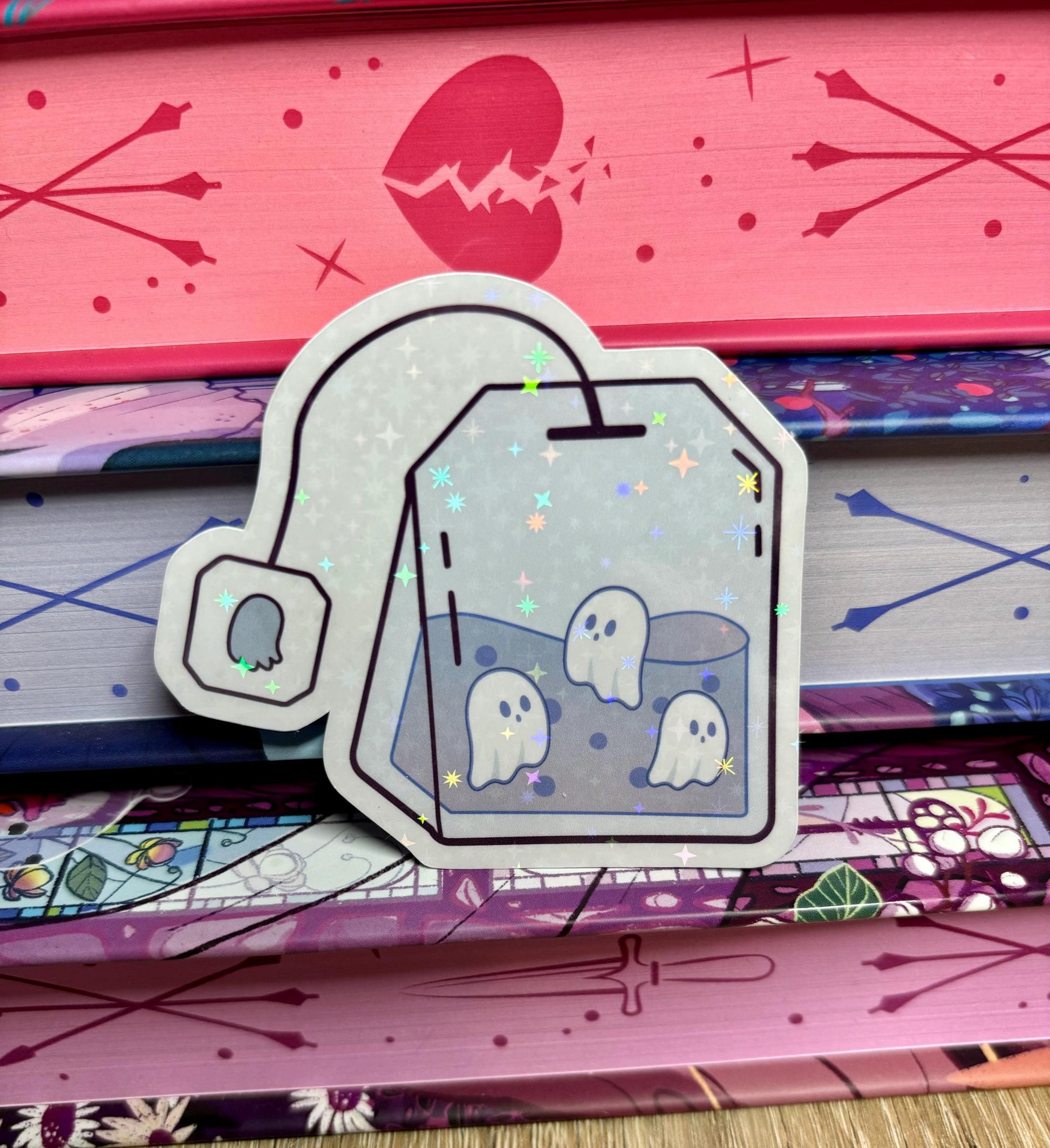 Printed on glossy sticker paper and laminated with holographic twinkle star laminate.