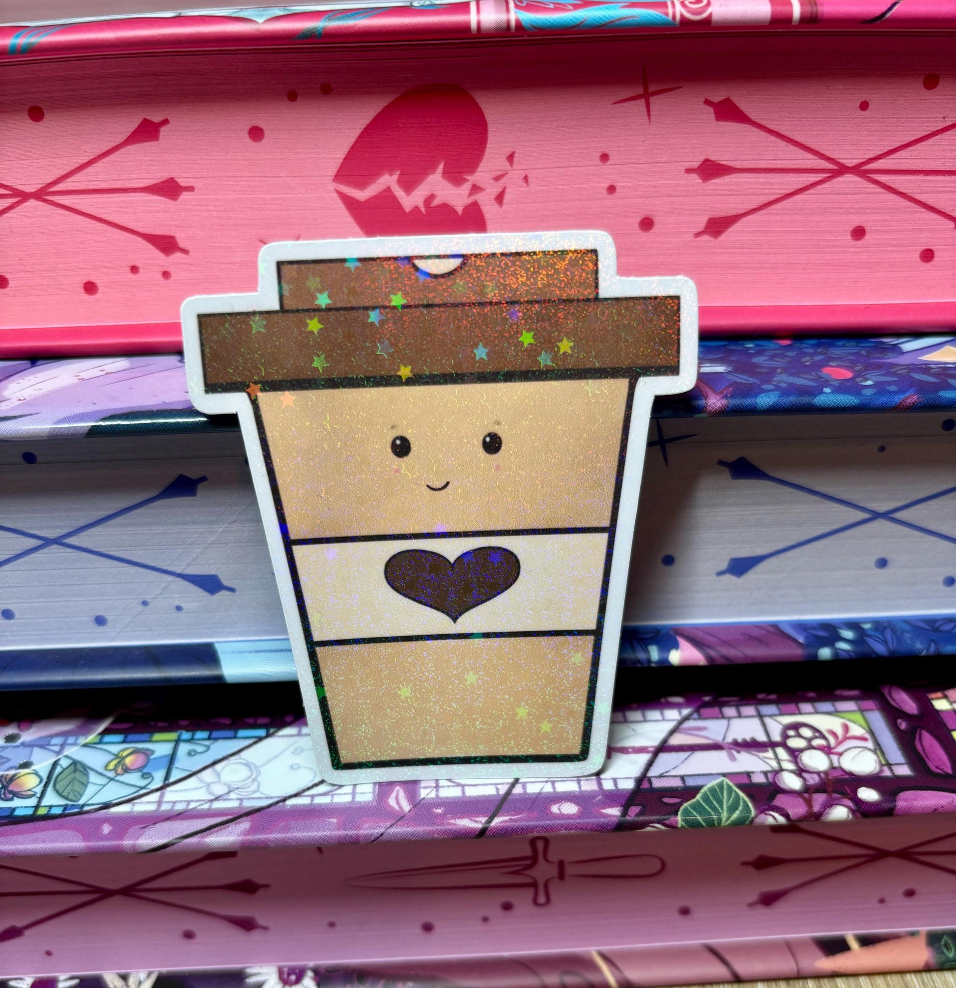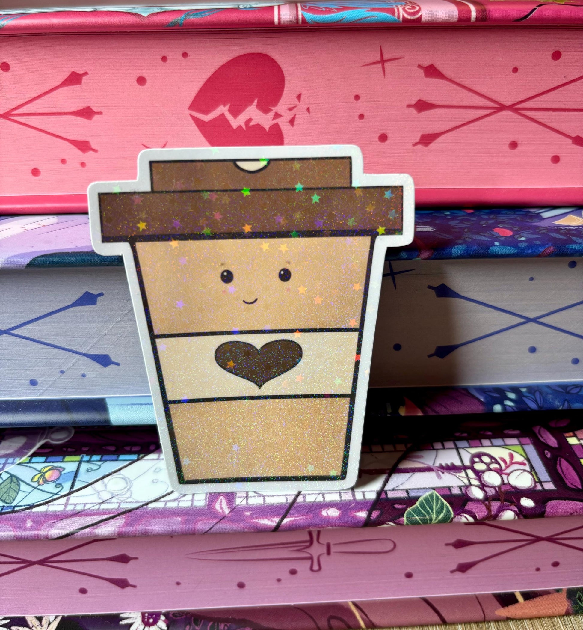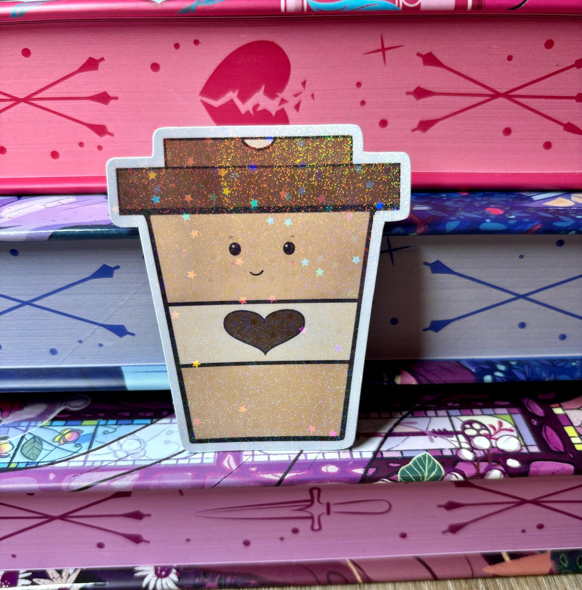 Printed on glossy sticker paper and laminated with holographic cute star pattern laminate.